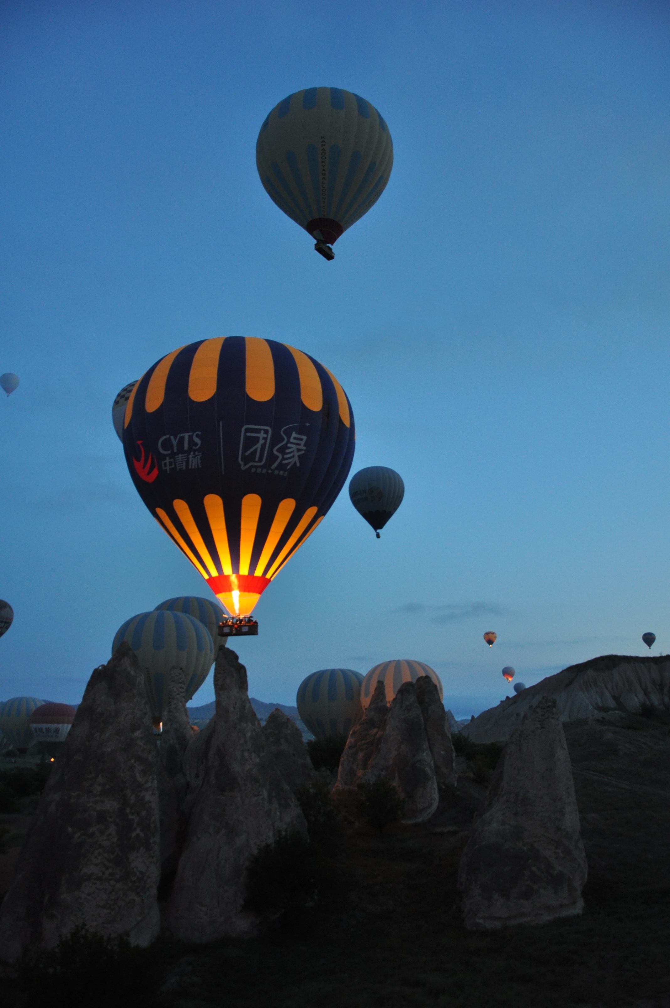 Wir müssen nicht mehr tun als Staunen und die Vorbereitungen geniessen. Das Anfeuern sorgt für tolle Lichtspiele innerhalb der Tuffsteinformationen in der Nacht.