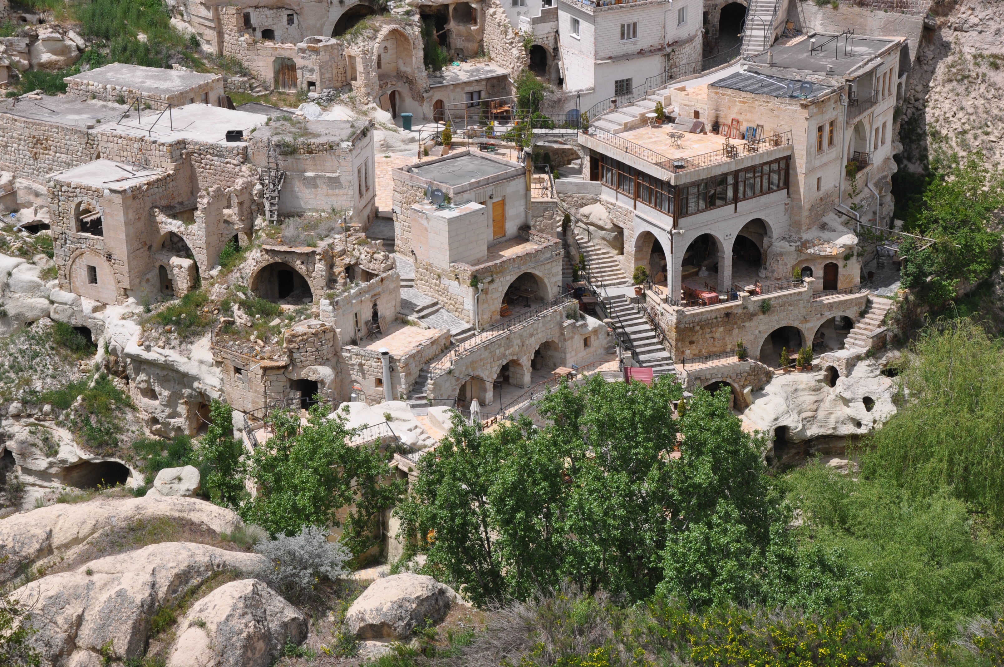 Bekannt ist diese Gegend ausserdem für seine in Tuffstein geschlagenen Wohnungen. In Göreme haben wir ebenfalls ein Hotel mit Zimmern gesucht, bei denen die Zimmer halb im Fels liegen.