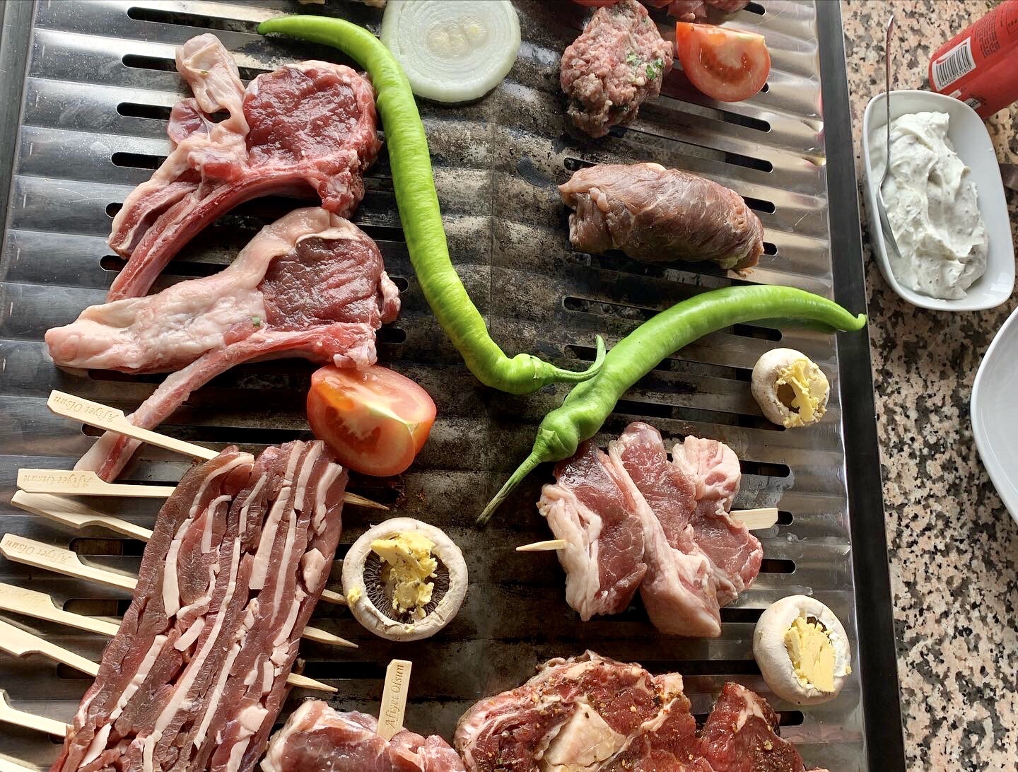 Wir geniessen ein Grill am Tisch, Baklava mit Eis und sind so satt, dass wir uns kaum bewegen können. Unglaublich, echte Holzkohlegrills in der Mitte des Tischs.