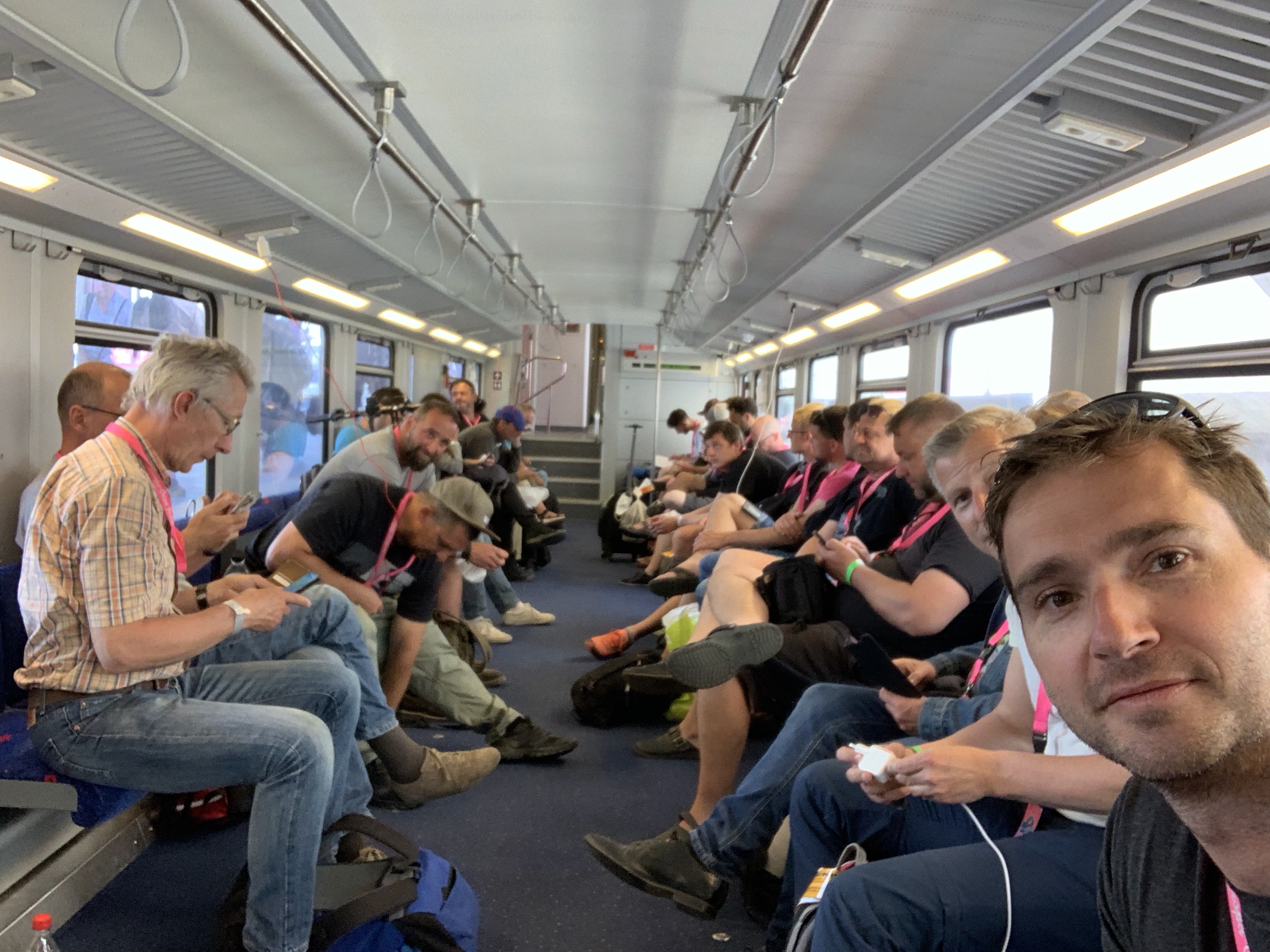 Mit dem Zug geht es weiter zum Hafen, wo wir unsere Campingstühle gut gebrauchen können. Mit leichtem Kopfschütteln und ungläubig, schauen wir sitzend zu, es müssen alle Autos entladen, und das Gepäck durch einen Scanner geschickt werden.