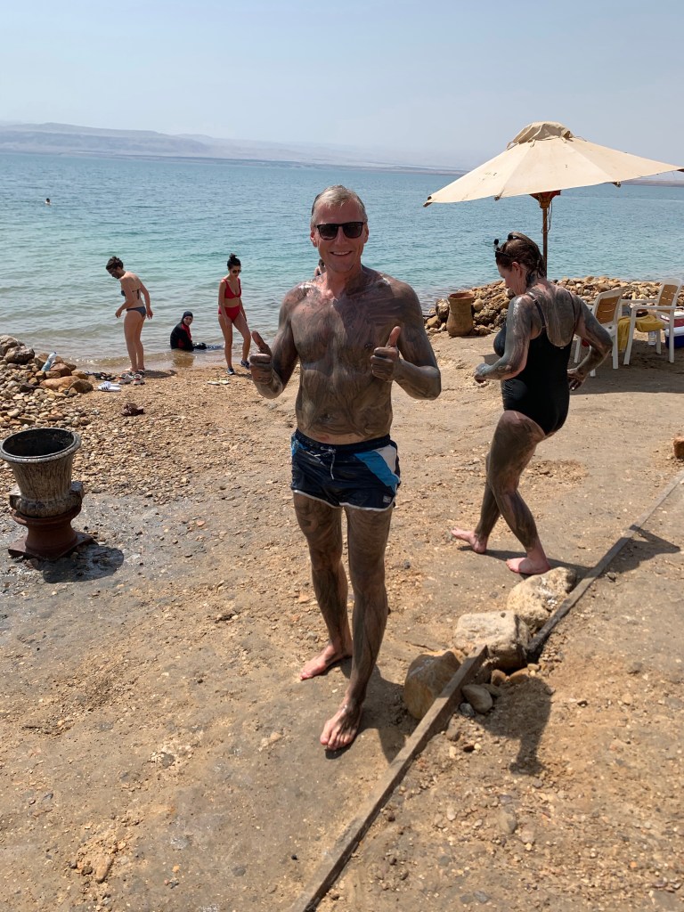 Wir geniessen die Sonne, kurieren uns aus und probieren das wohltuende Wellnessprogramm am Toten Meer aus. Neben uns zahlreiche Erholungssuchende mit stattlichen Sonnenbrillengeschmack.